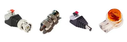Используются для подключения питания камер и видеосигнала соответственно. Однако не всем известно что теперь эти разъемы стали доступны не только с клеммной колодочкой, но и в самозажимном варианте.