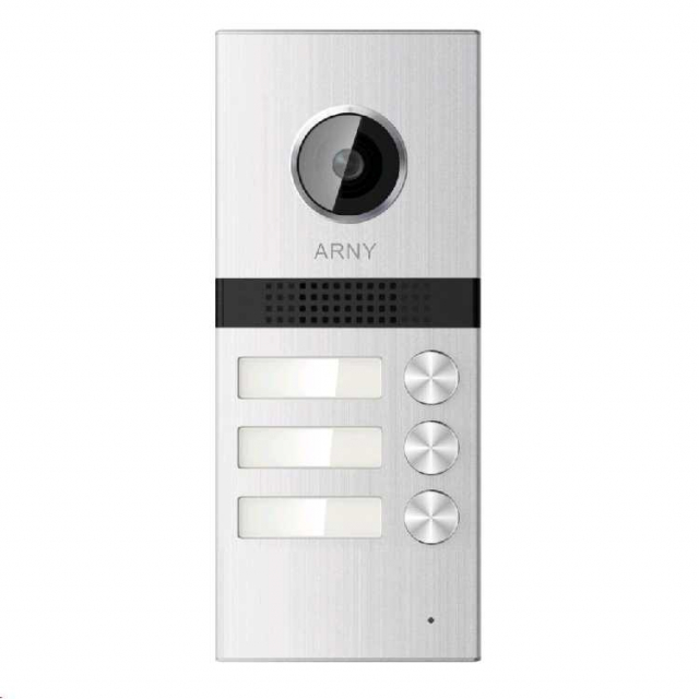 3-х абонентська панель виклику з ІК підсвічуванням. Вбудована відеокамера з роздільною здатністю 1000 ТВЛ. Кут огляду: 125 град. Управління замком. Колір: срібло. Габаритні розміри: 150.6х64.3х23.6