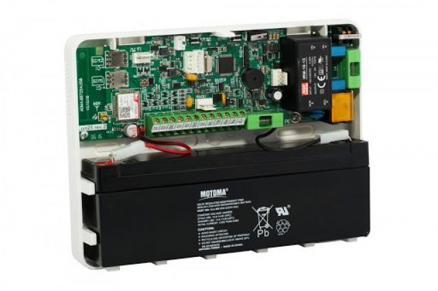 5 зон на платі з можливістю розширення до 17 зон. Вбудований зчитувач безконтактних карт EM-Marine. Вбудований контролер АКБ. Можливість поділу системи на 2 групи. Поставляється без АКБ