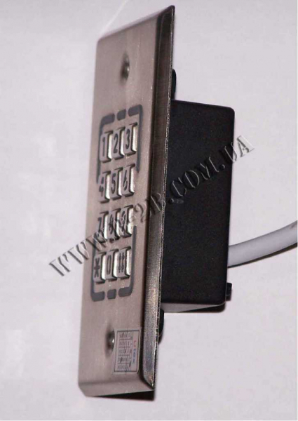 Врезная кодовая панель со встроенным Em-marin считывателем (встроенная энергонезависимая память на 1000 карт). Встроенный тип установки, который предотвращает повреждение устройства из-за грубой поверхности стены. Когда устройство перемещено или изменено с задействованием силы, срабатывает датчик функции вскрытия доступа. Однократная проксимити карта, одна запись номер карты, или пакетный ввод и карты могут быть выданы заранее. Имеется специальная память для предотвращения потери данных в случае отключения питания. Предусмотрено 5 методов открытия дверей: ввод пароля входа, близость и пароль, пароль или близость вступления, а также специальные системы ввода пароля. Максимальная дальность считывания: 15 см (125 кГц) (в зависимости от типа карты). Диапазон рабочих температур: 0 ~ 60 C; максимальная влажность: 85%.