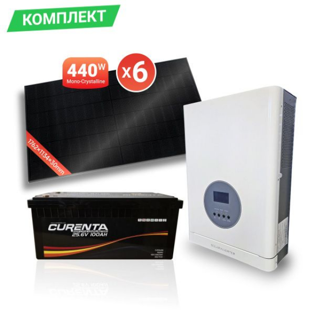 "НЕЗАЛЕЖНІСТЬ.ПОЧАТОК" Комплект обладнання для накопичення енергії (Інвертор UTEX-GA3024JMH+LiFePO4 батарея 24В/100Аг + 6 шт сонячних панелей QN-440HT 440W з генерацією до 2640Вт/год)