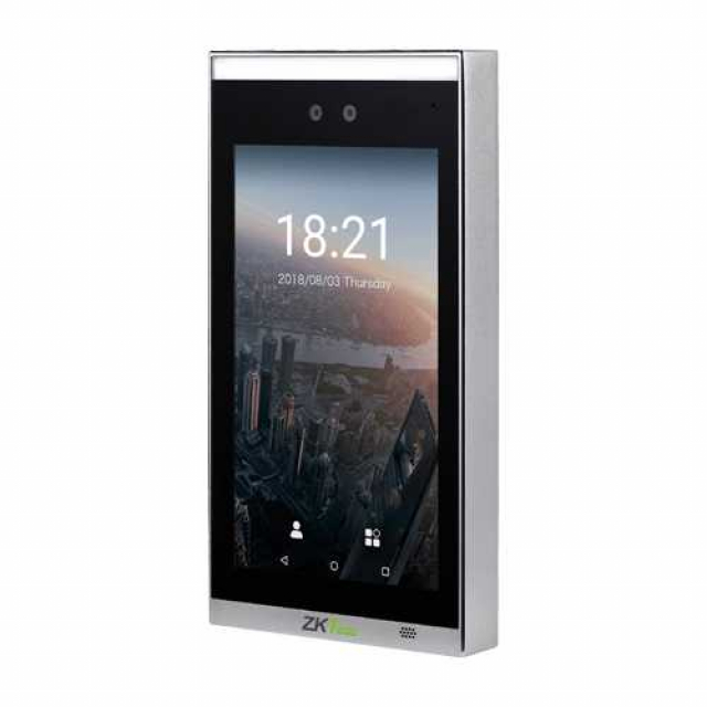 Мережевий термінал контролю доступу та обліку робочого часу з ідентифікацією 10 000 користувачів по геометрії особи, з сенсорним дисплеєм. Інтерфейси зв'язку TCP / IP, 2 USB Host, RS232, RS485, Wiegand вхід / вихід. Підтримує роботу з ZKBioSecurity